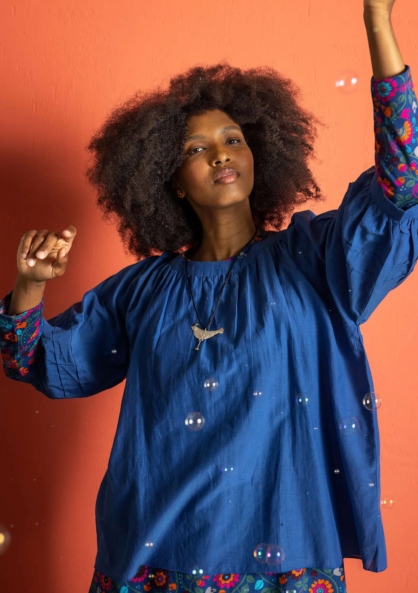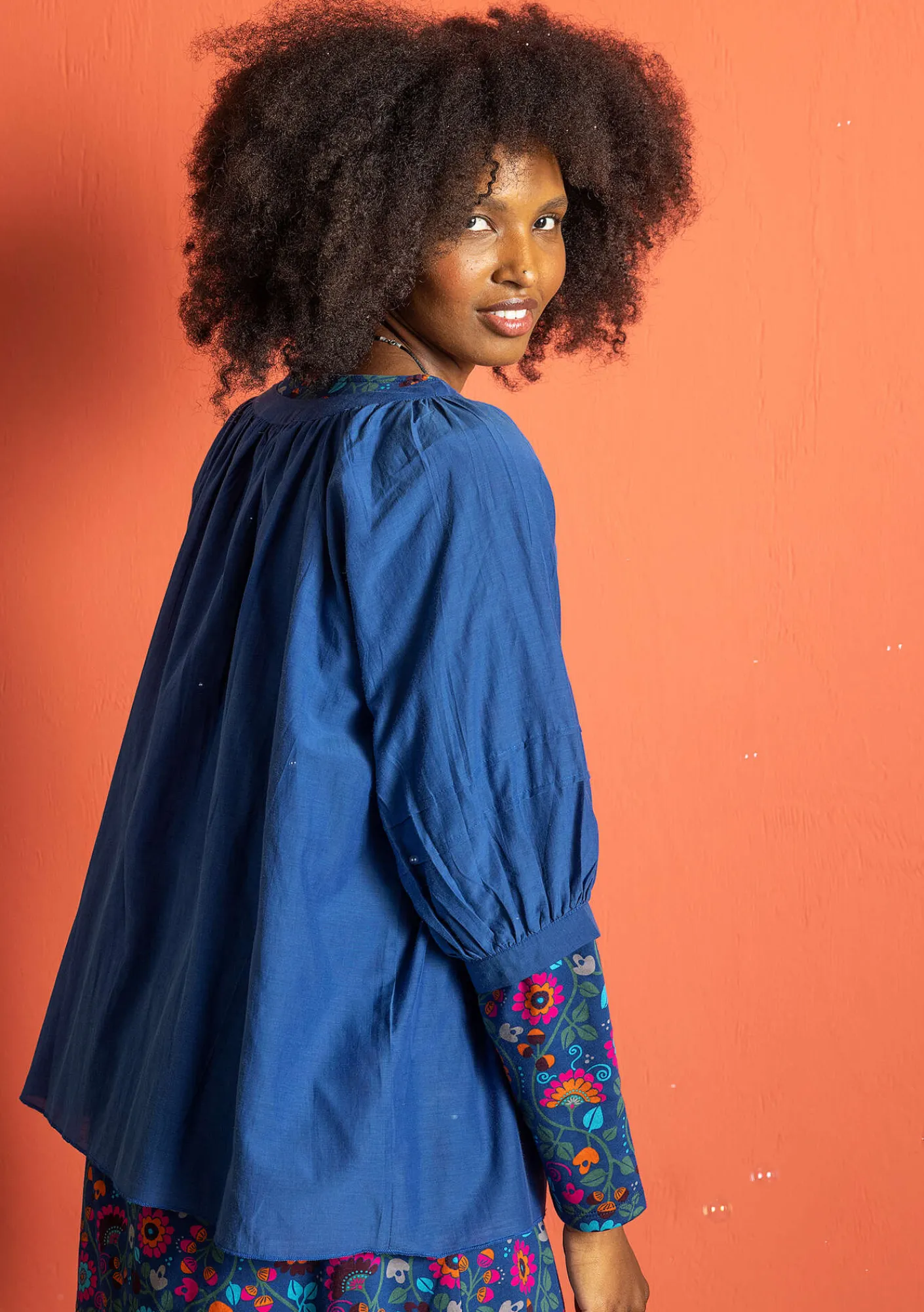Gudrun Sjödén Blusen>Bluse aus Baumwolle/Seide Indigoblau