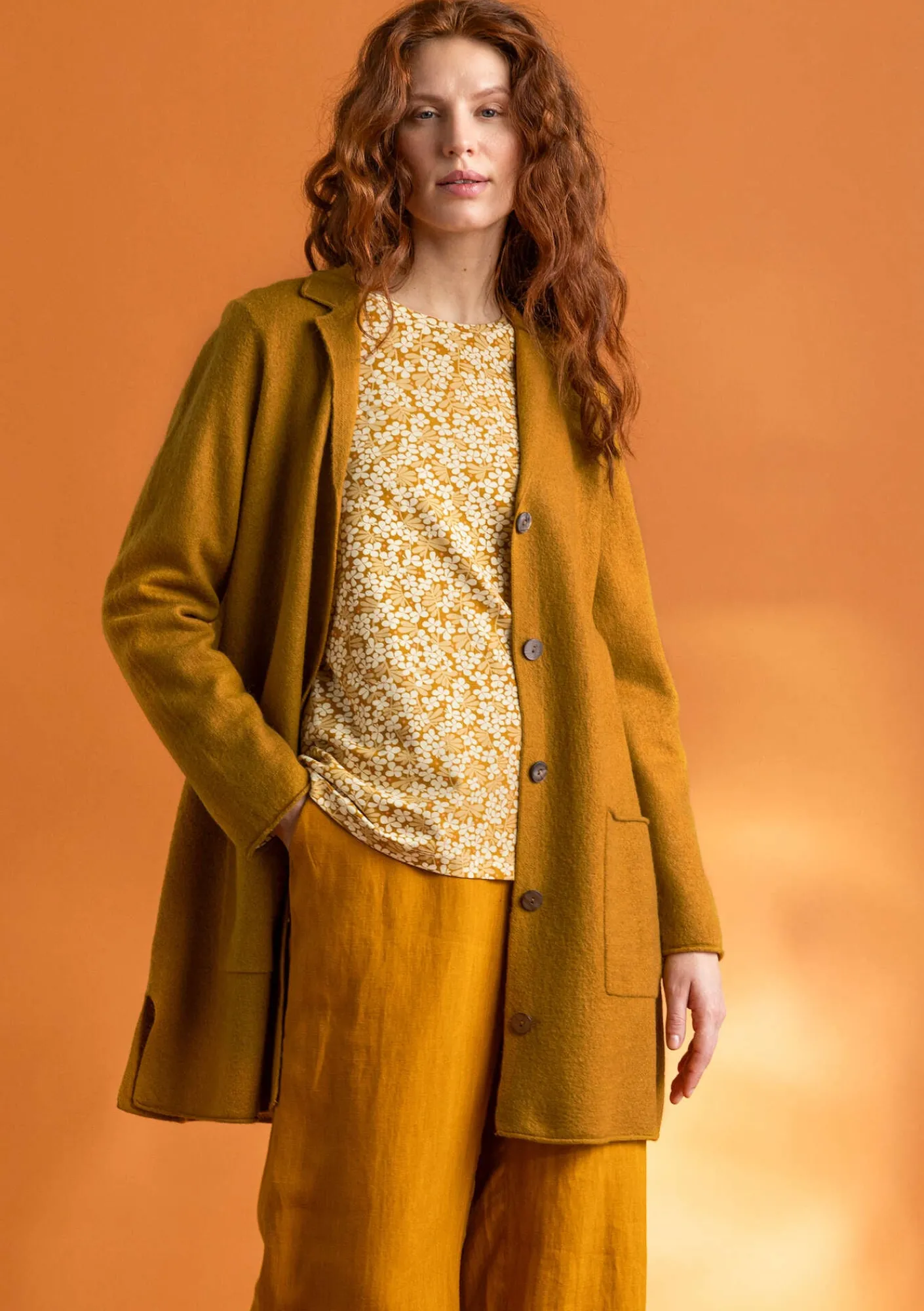 Gudrun Sjödén Jacken & Mäntel|Strickjacken>Gestrickter Blazer aus gefilzter Bio-Wolle Curry