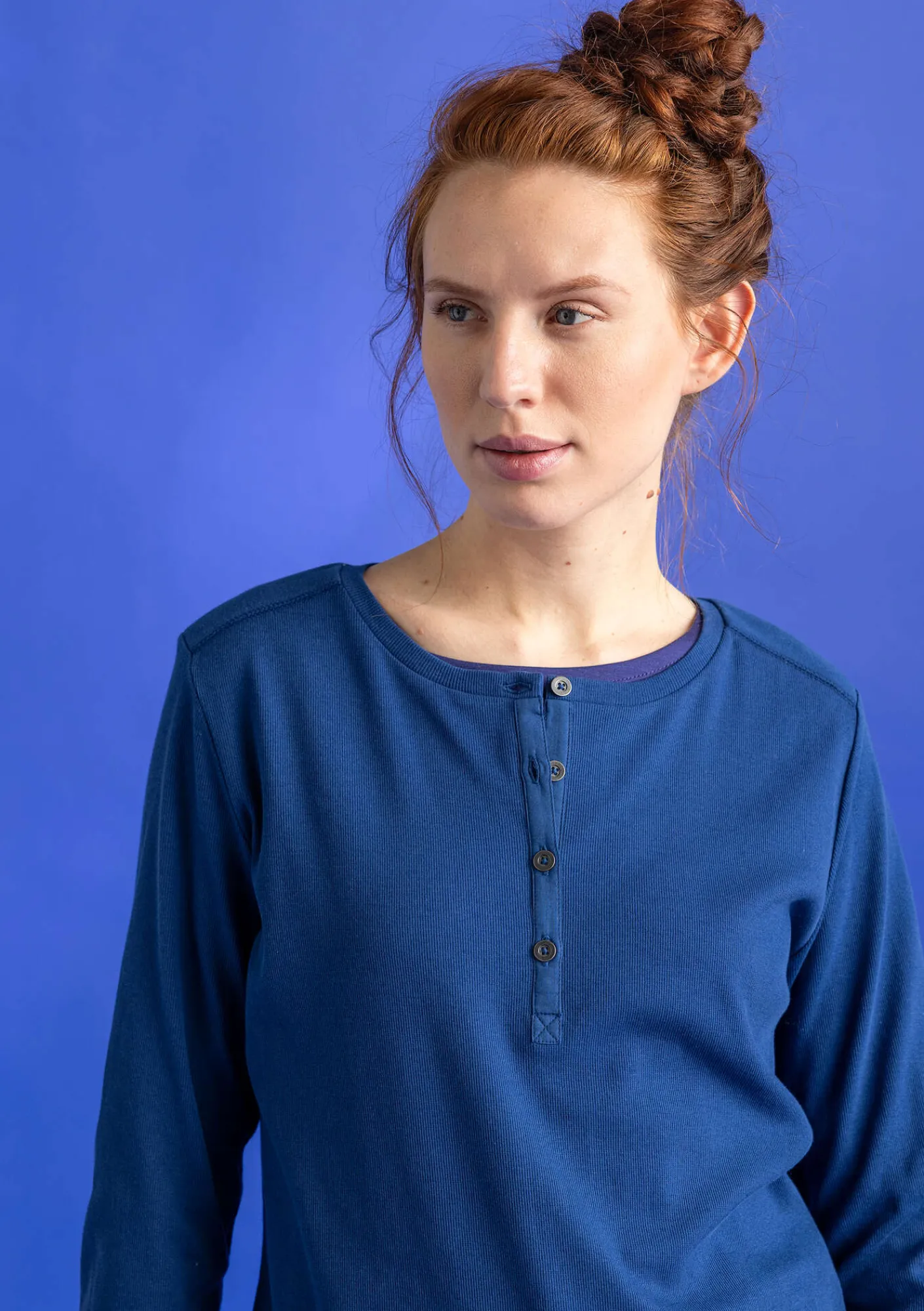 Gudrun Sjödén Pullover & Shirts>Knopfleistenshirt aus Bio-Baumwollripp Indigoblau