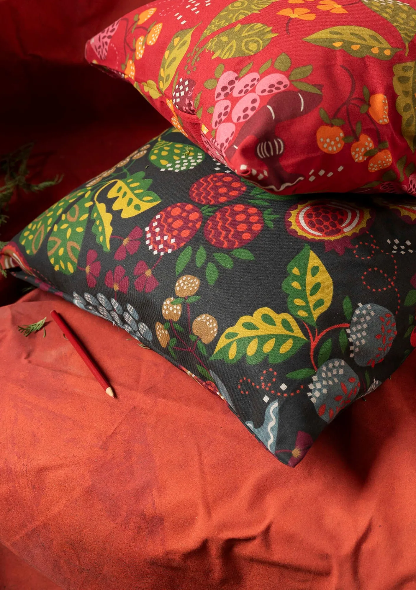 Gudrun Sjödén Stoffe|Heimtextilien>Meterware „Fruits“ aus Bio-Baumwolle Dunkelaschgrau