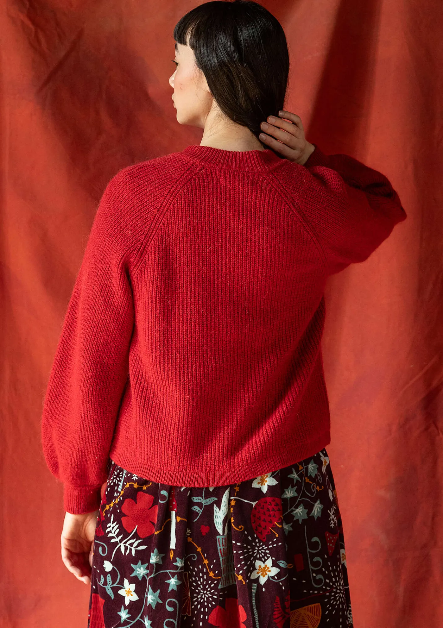 Gudrun Sjödén Strickjacken>Strickjacke „Vinternatt“ aus Bio- und Recycling-Baumwolle/Alpakawollgemisch Tomate