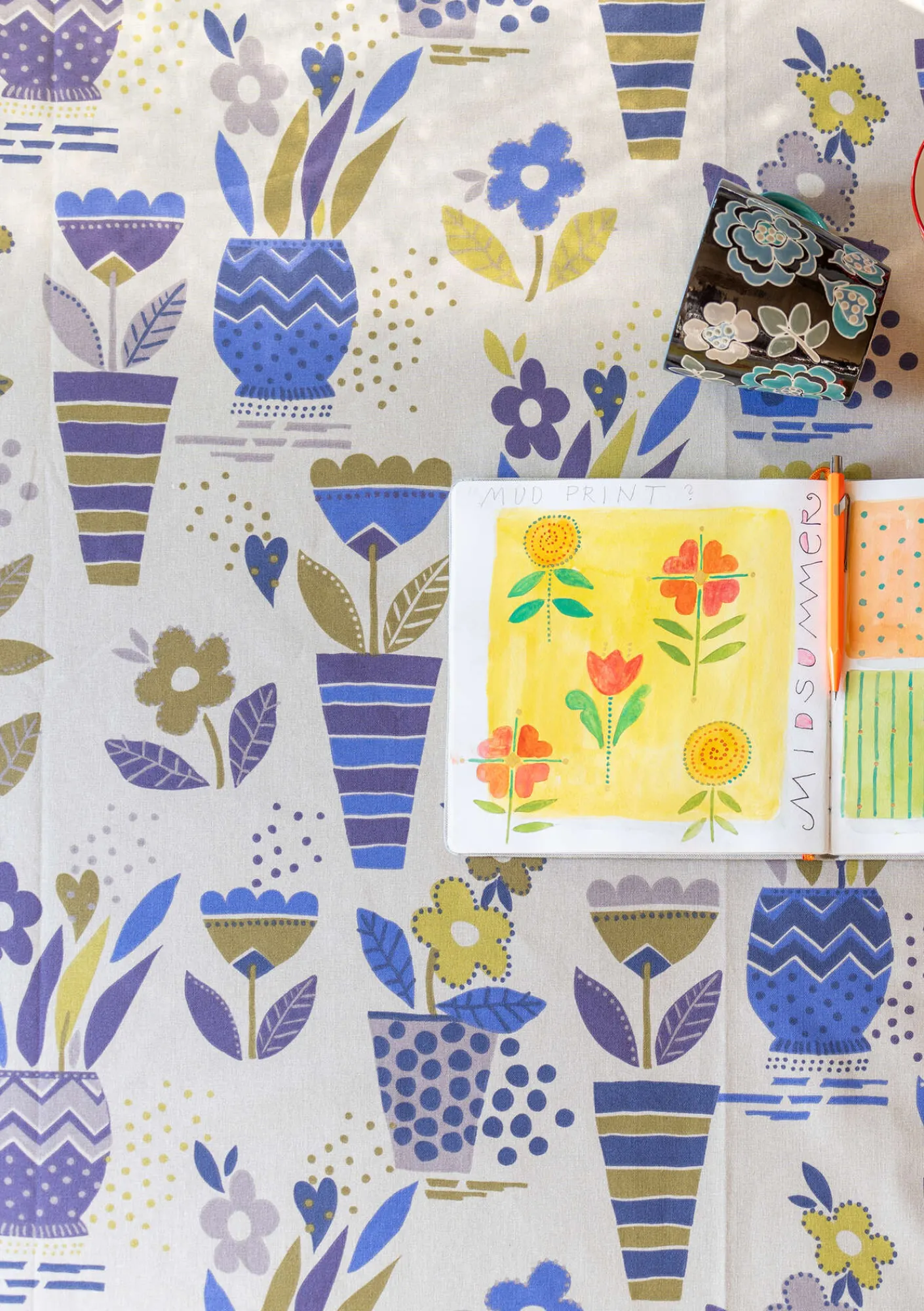 Gudrun Sjödén Tischdecken & -läufer|Küche & Esszimmer>Wachstuch „Flower pots“ aus Bio-Baumwolle Graulila