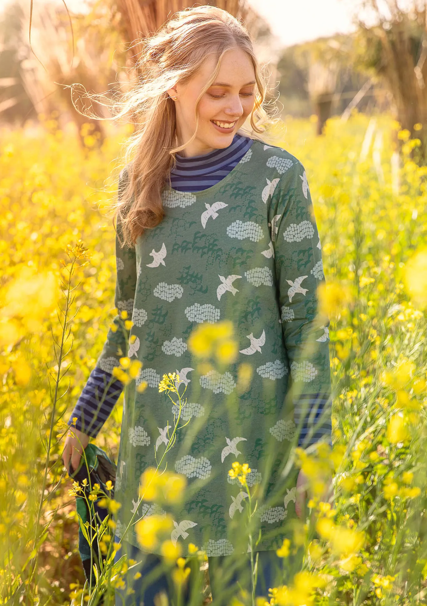 Gudrun Sjödén Tuniken>Jerseytunika „Flyttfågel“ aus Bio-Baumwolle Meeresgrün