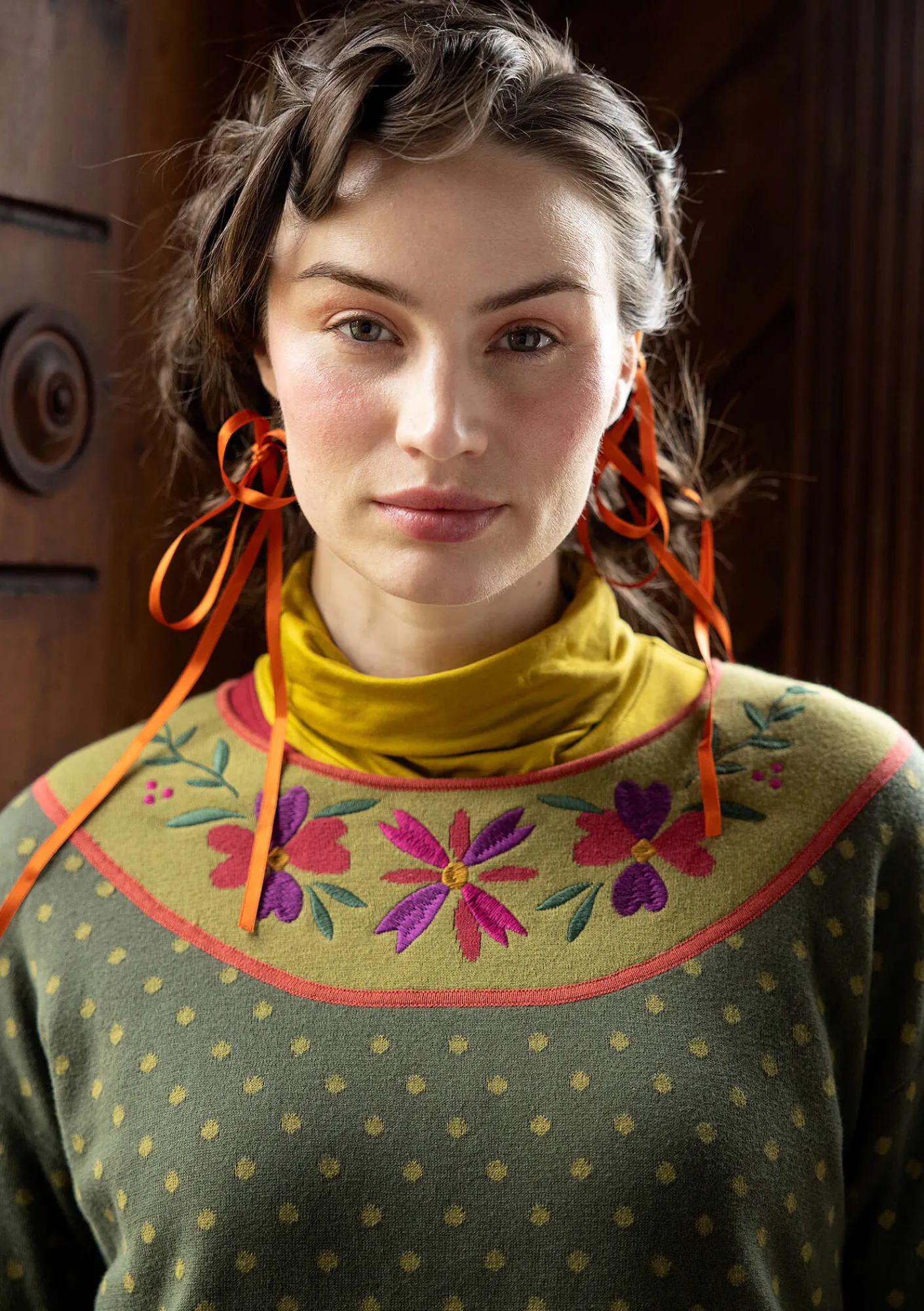 Pullover im doppelseitigen Jacquardstrick, mit dekorativer Stickerei am runden Ausschnitt. Hübsche Bogenkante an Ärmelabschlüssen und Saum.