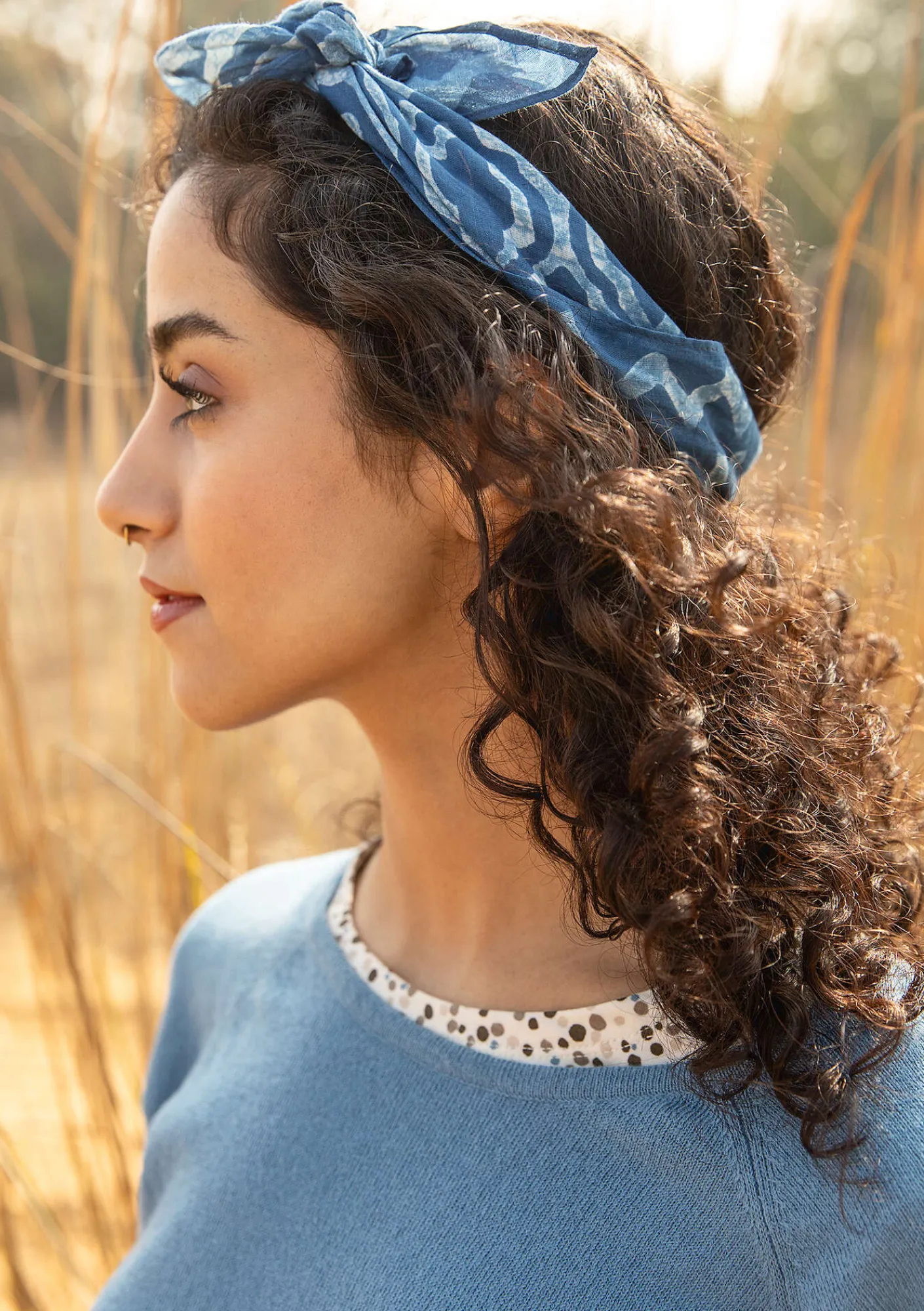 Dreieckiges Tuch mit handwerklichem Blockdruck, schön um den Hals zu binden.