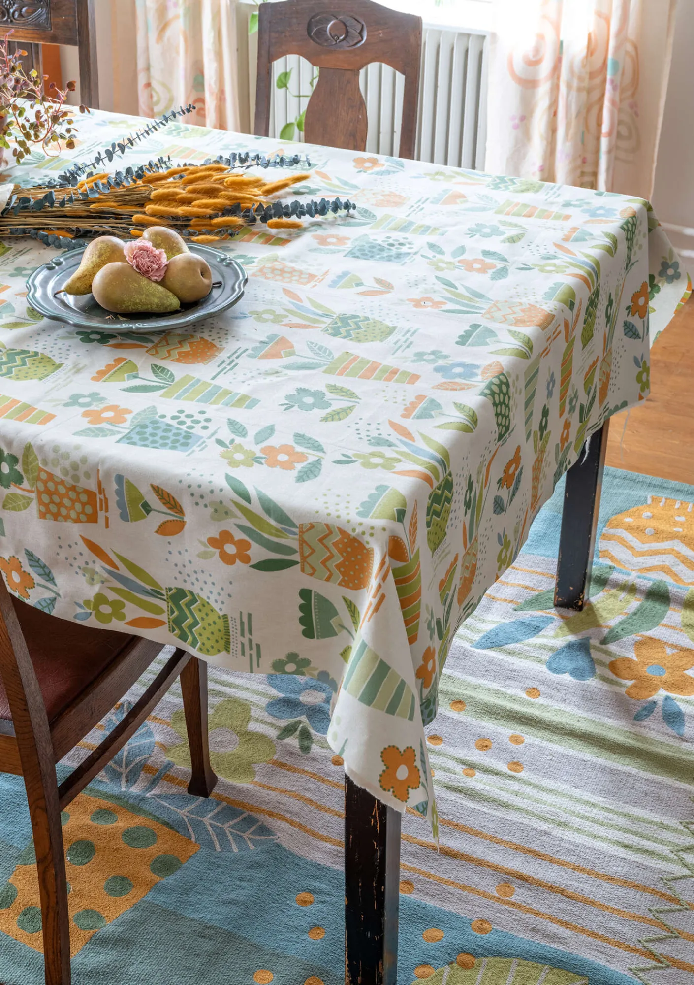 Praktisches und zugleich verspieltes Wachstuch mit Musterdruck. Rechteckiges Modell aus Bio-Baumwolle, mit abwischbarer Oberfläche.